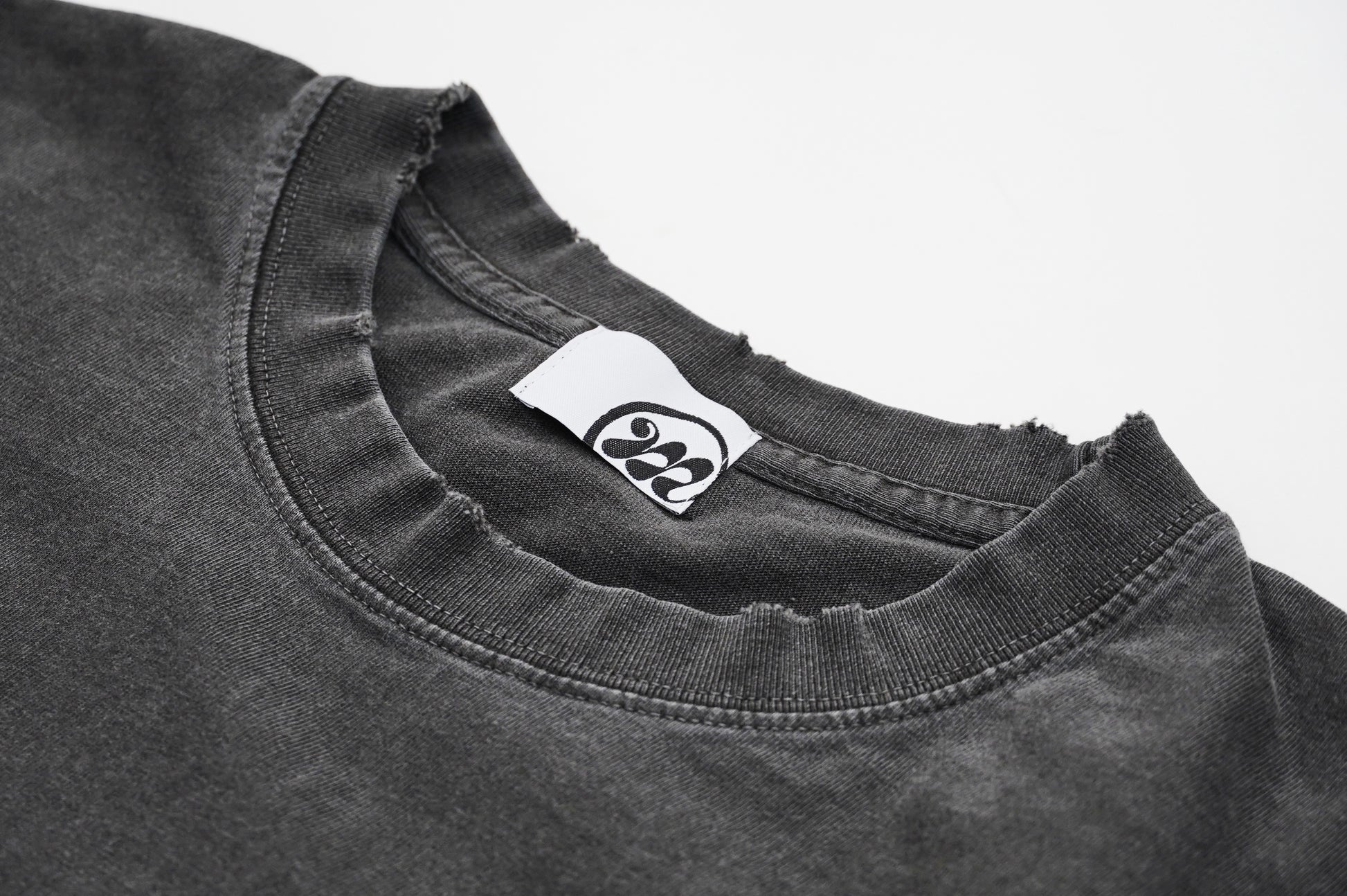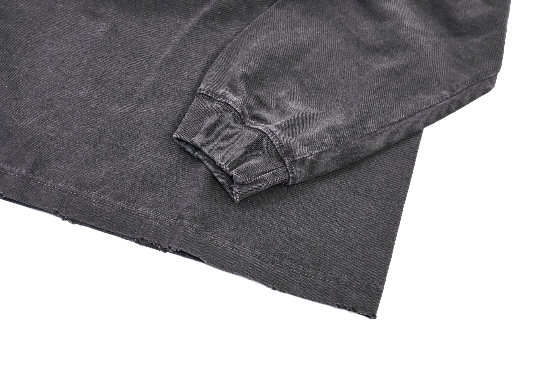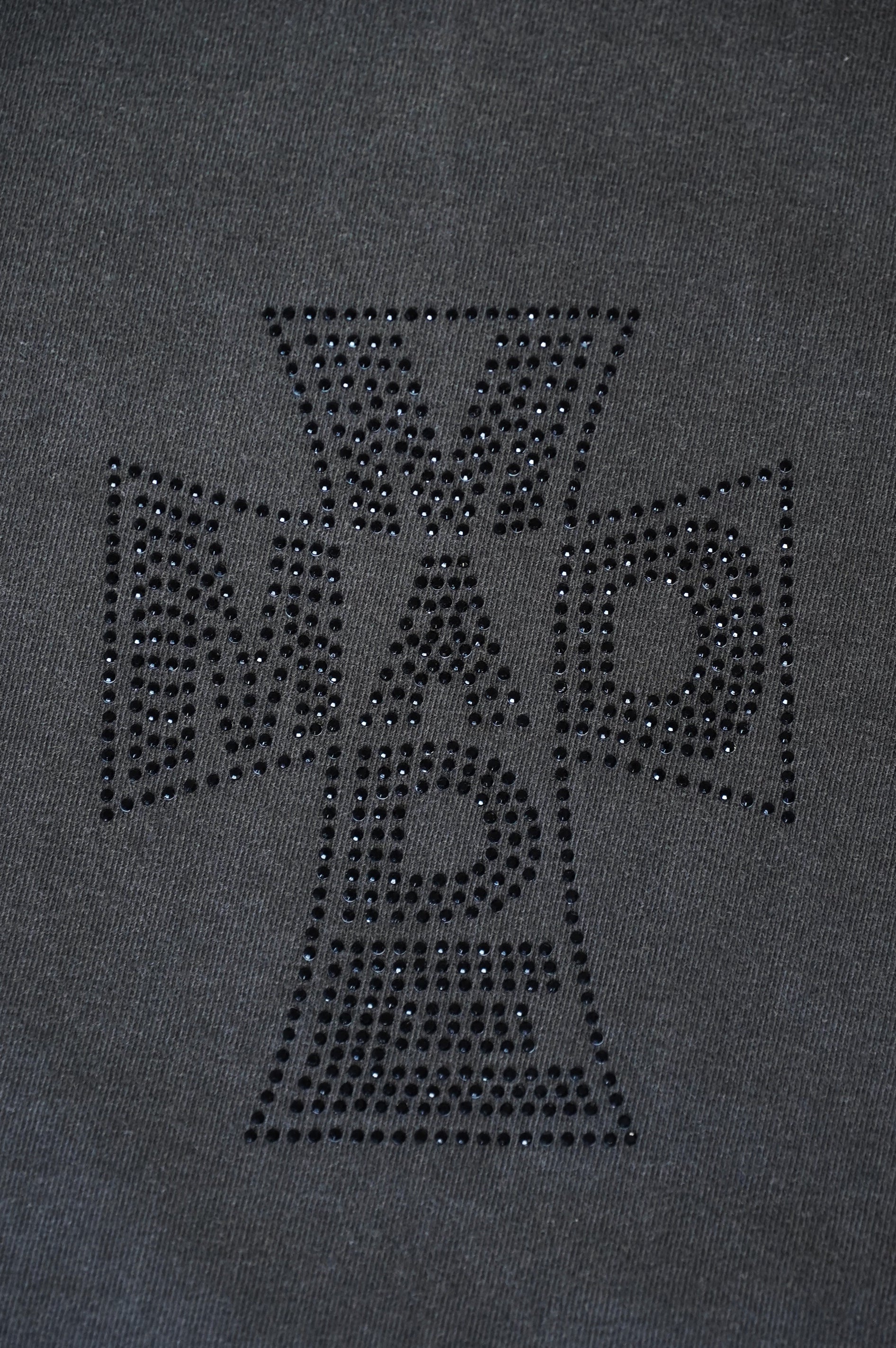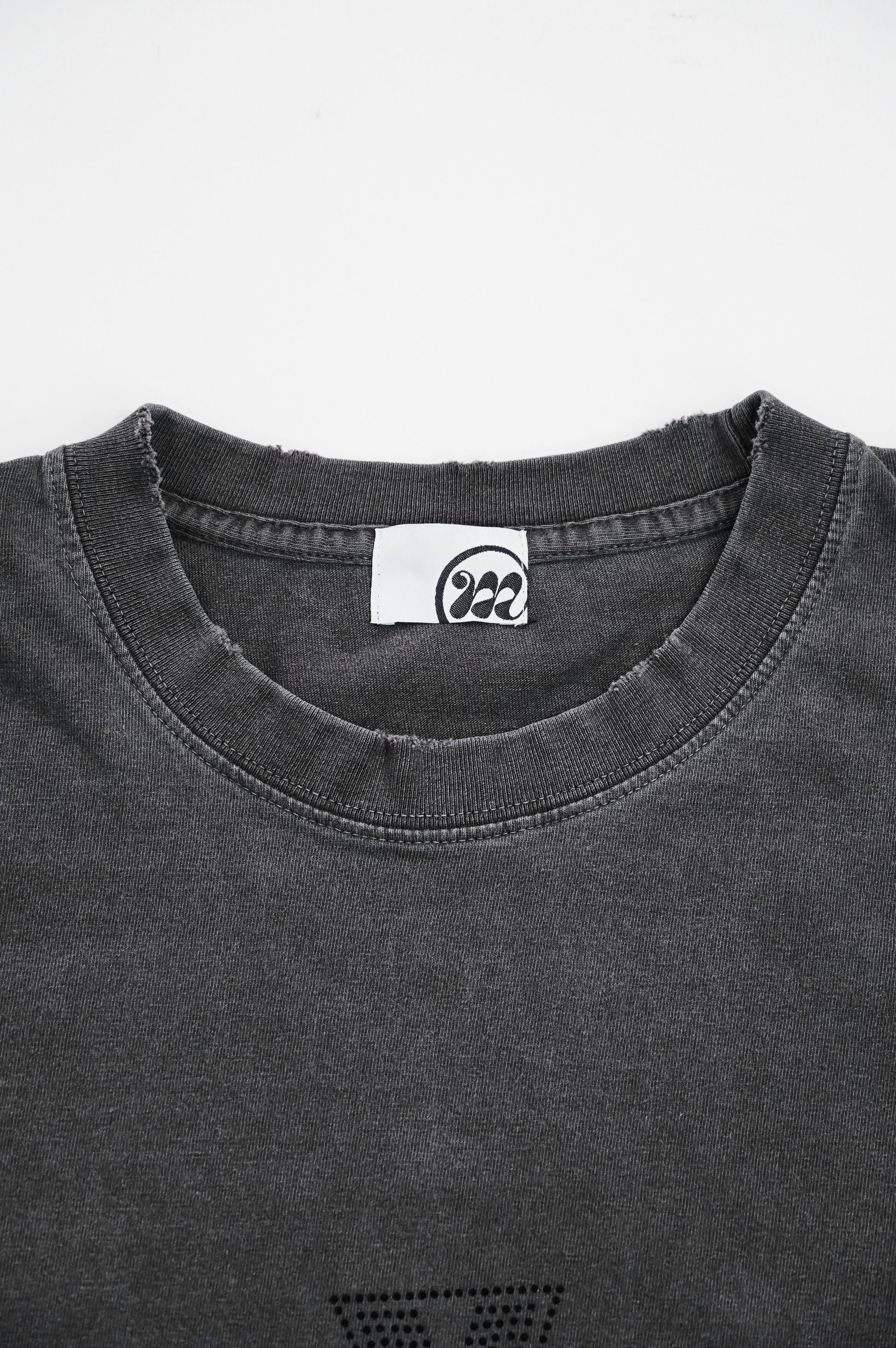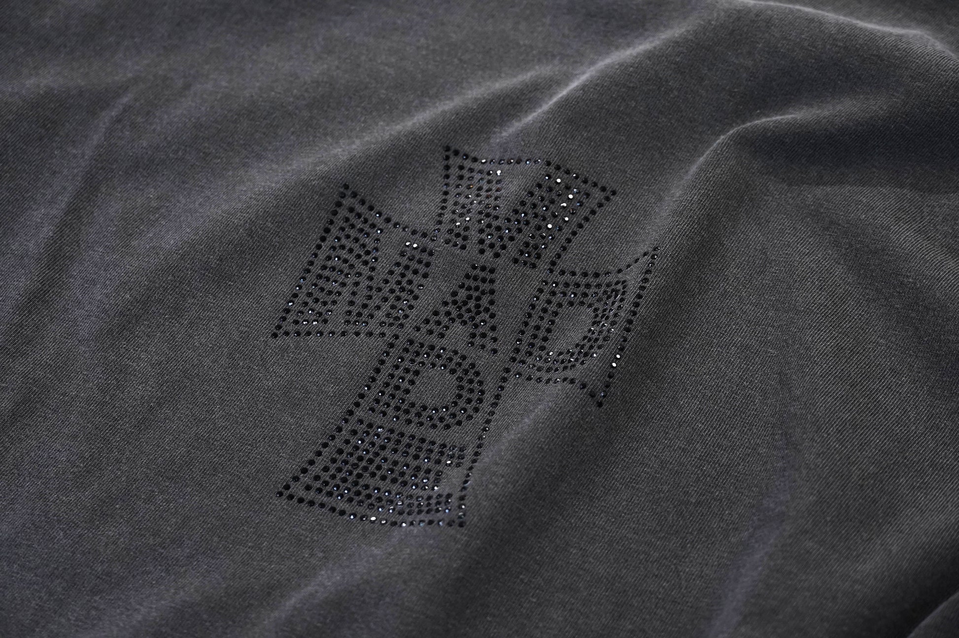 ピグメント加工したロンTにダメージ加工とラインストーンを贅沢にあしらった、存在感抜群のロングスリーブTシャツ。