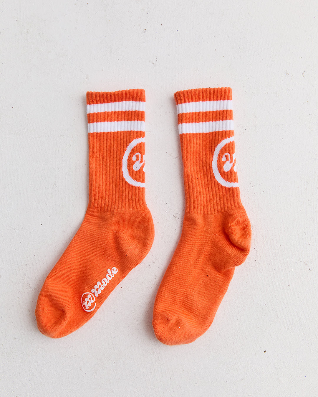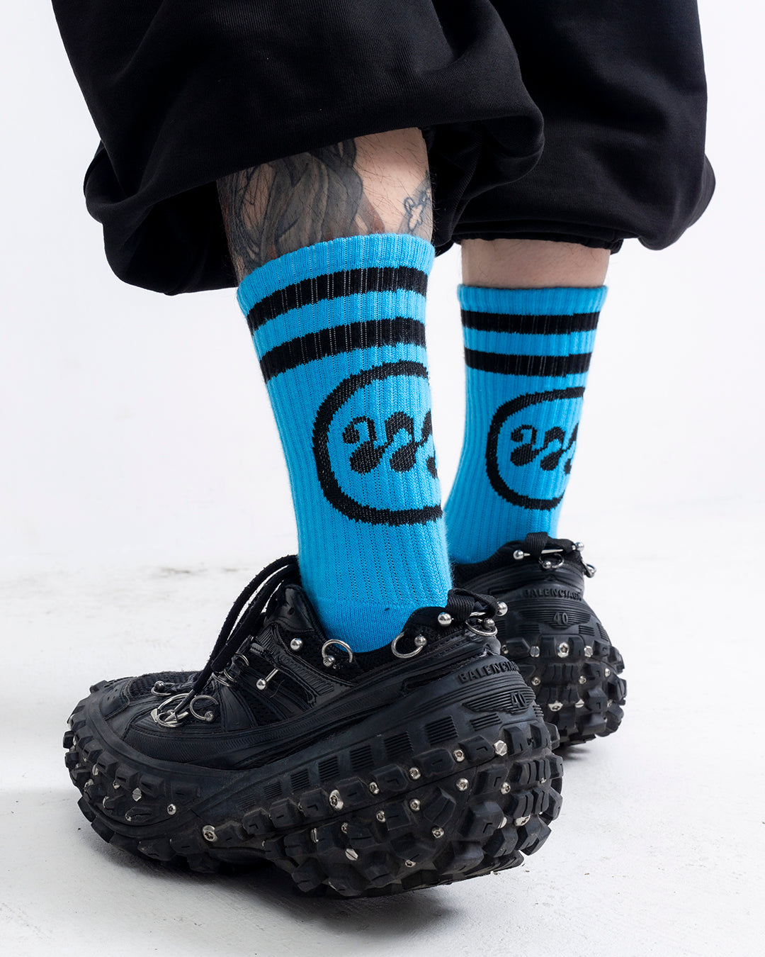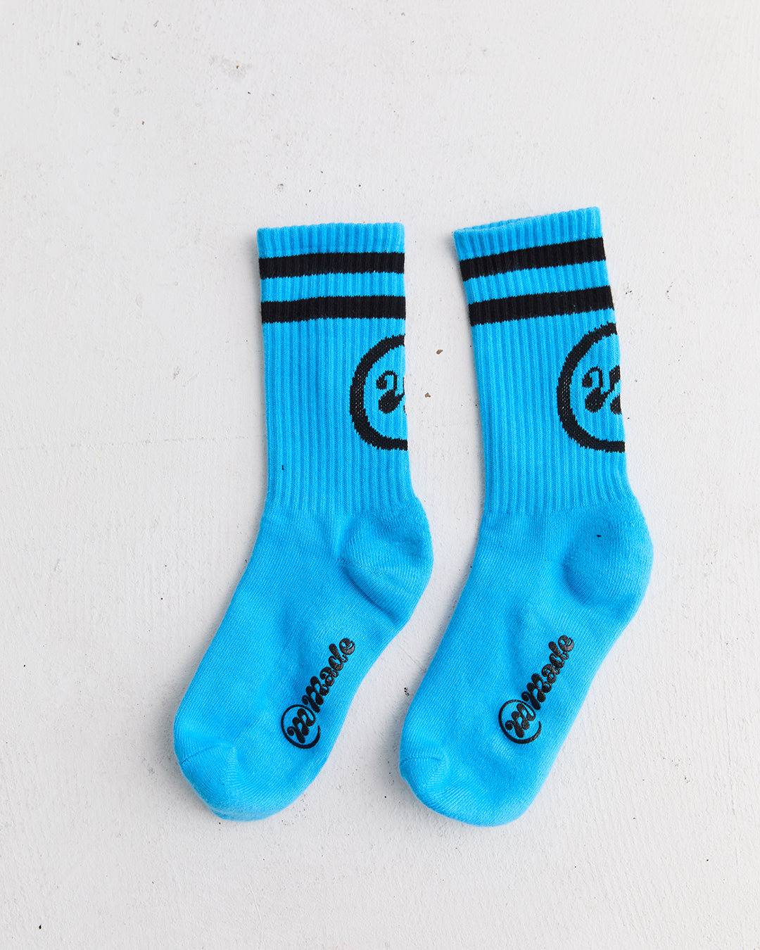 ふくらはぎにブランドロゴがジャガードで表現されたMADMADE定番のロングソックス。