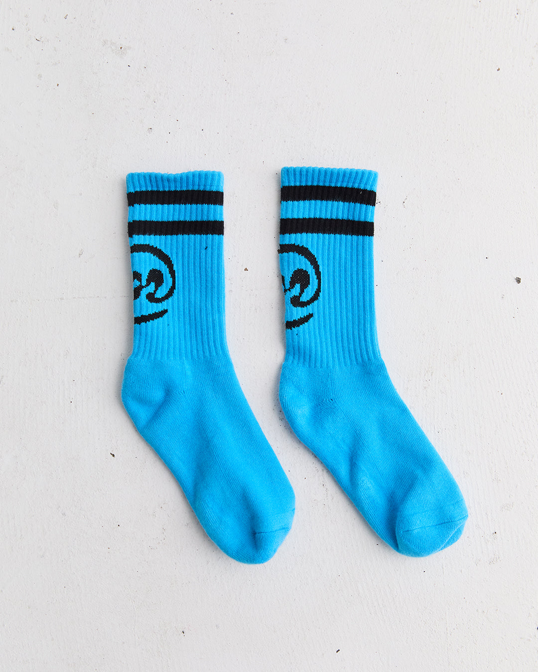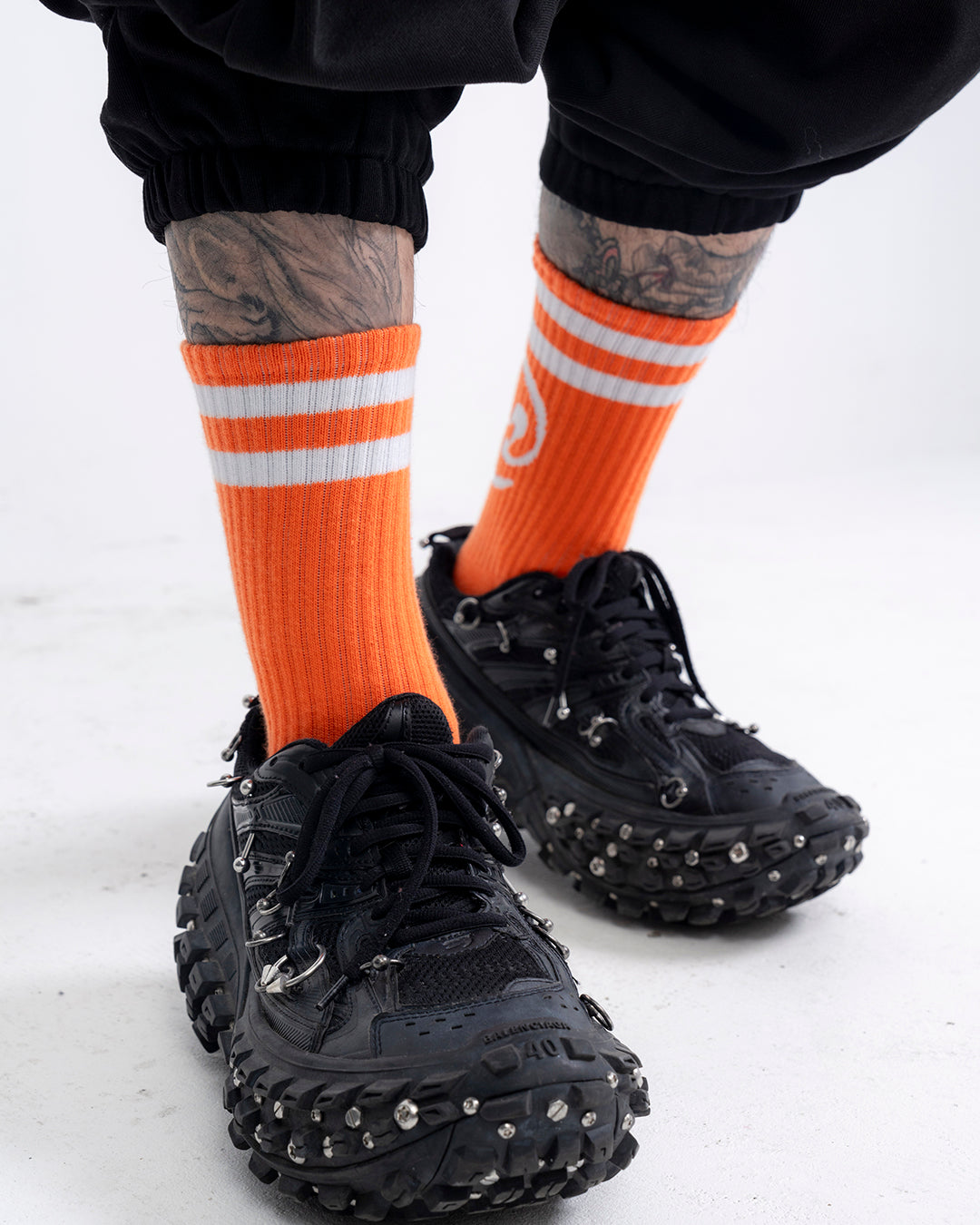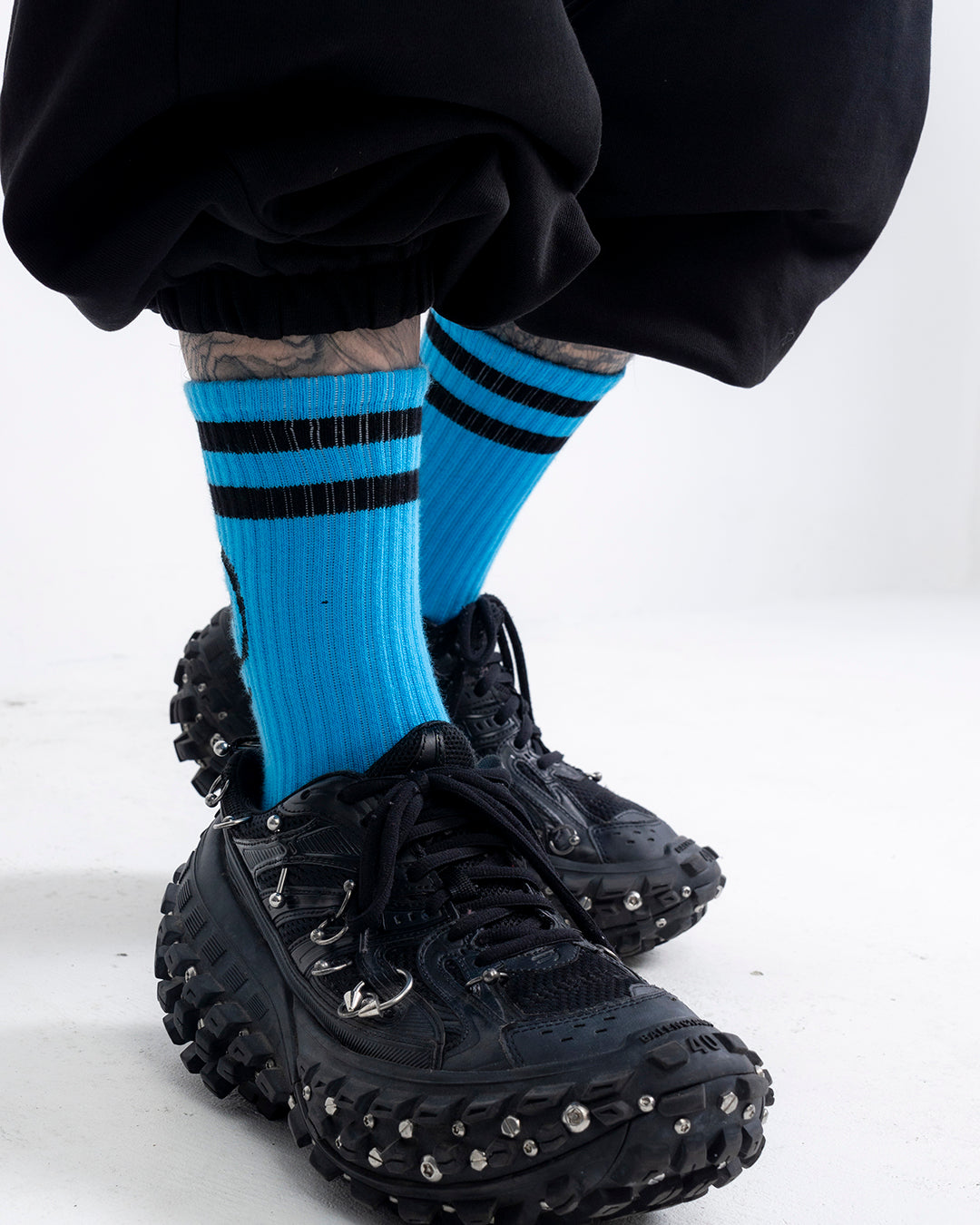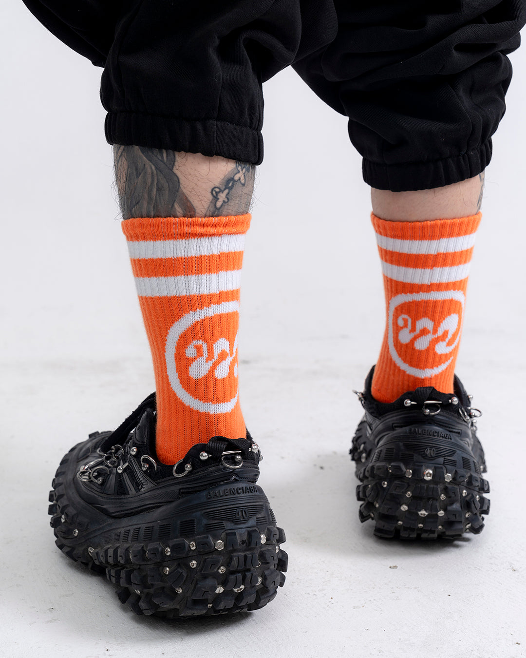 ふくらはぎにブランドロゴがジャガードで表現されたMADMADE定番のロングソックス。